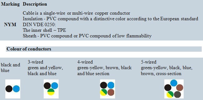 NYM – Power cable with copper current-conducting wire, insulation and sheath from PVC, with the filling of the space between the conductors